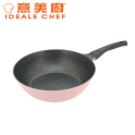 意美廚韓國製鋼化鑄鋁大理石紋易潔 28X8.5CM單柄深煎鍋 - 粉紅色